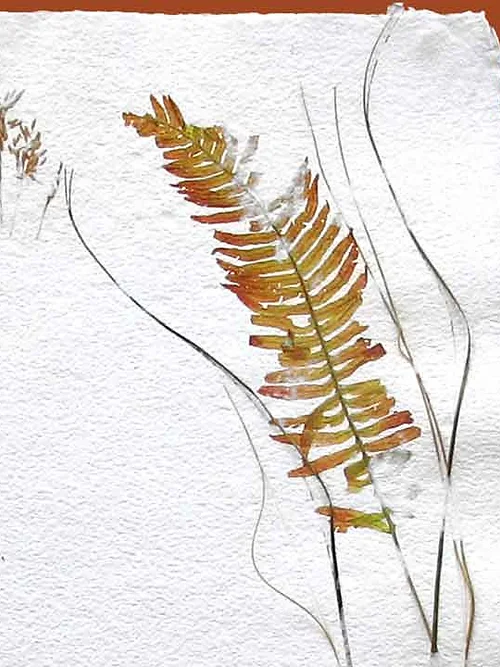 Jamie Shear, the artist, utilized traditional papermaking techniques to create this paper by hand. The paper features an oval floral border made from a cotton-based pulp mixed with dried flowers. When you add your own text, it transforms into a commissioned work of art.